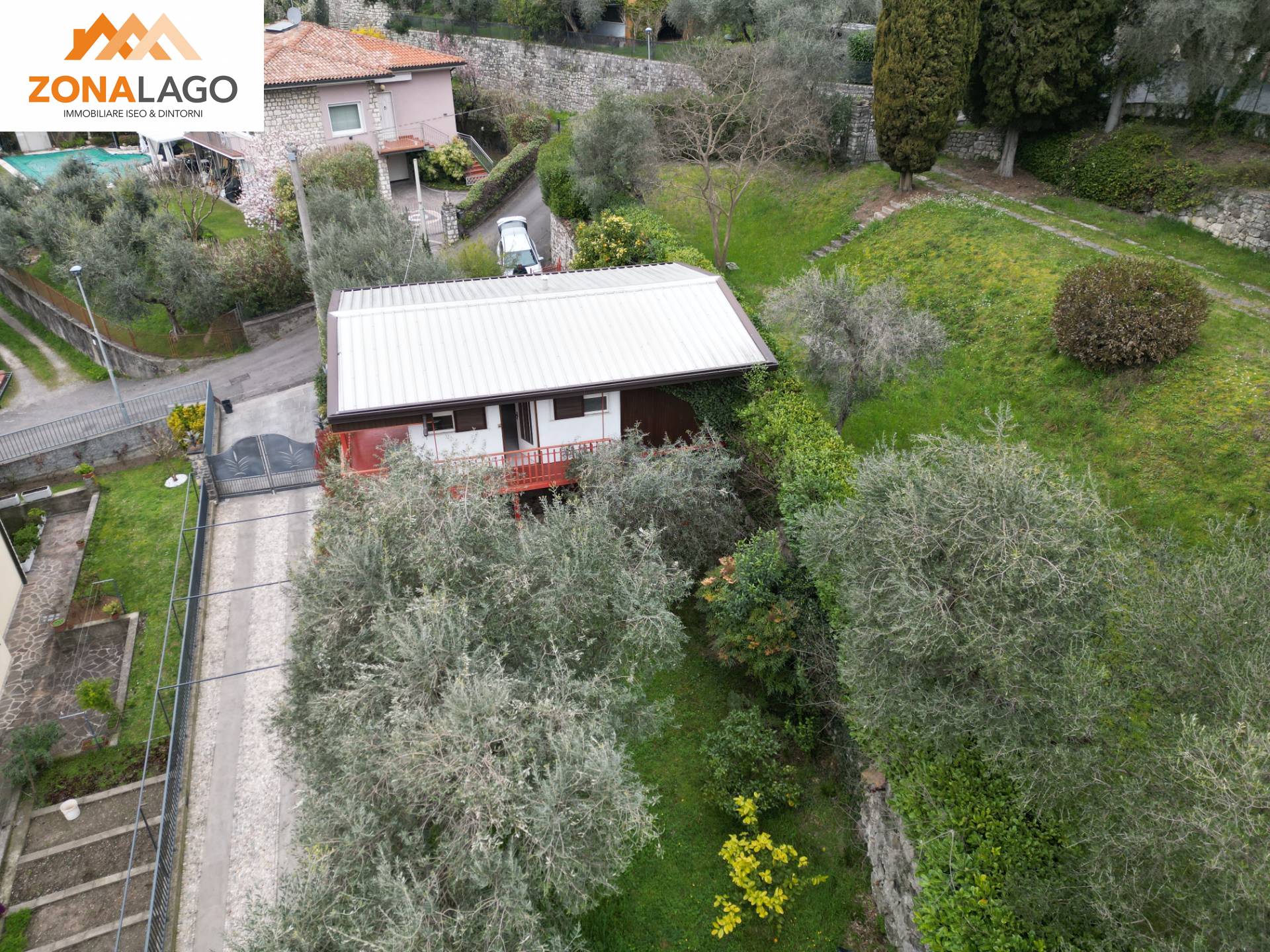 posizione soleggiata e vista lago, su lotto di 350mq completamente pianeggiante, casetta singola degli anni 60, struttura leggera di 50mq con terrazza,