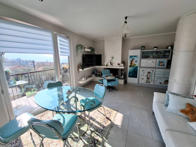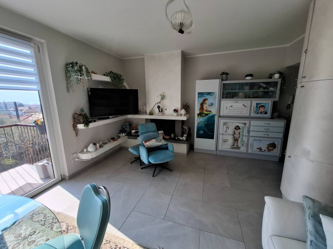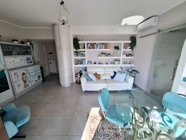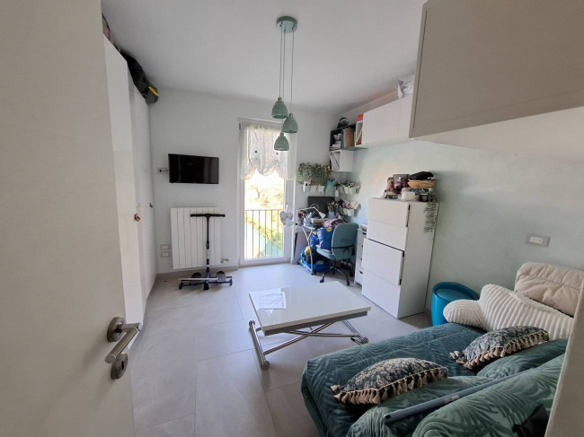 luminosissimo soggiorno con cucinetta autonoma(arredata) , vetrata con accesso alla terrazza, caminetto a legna, due camere doppie e bagno/lavanderia.