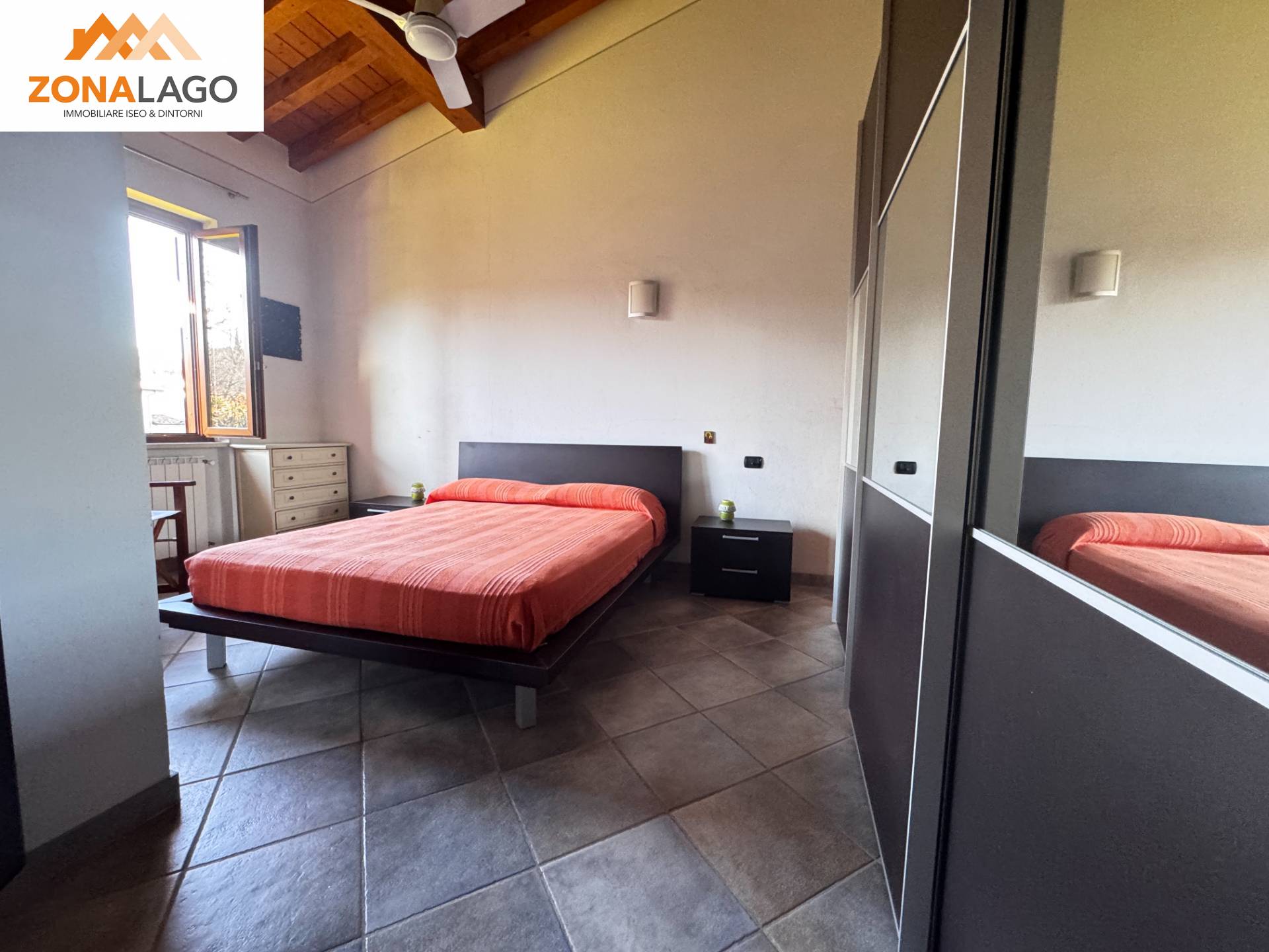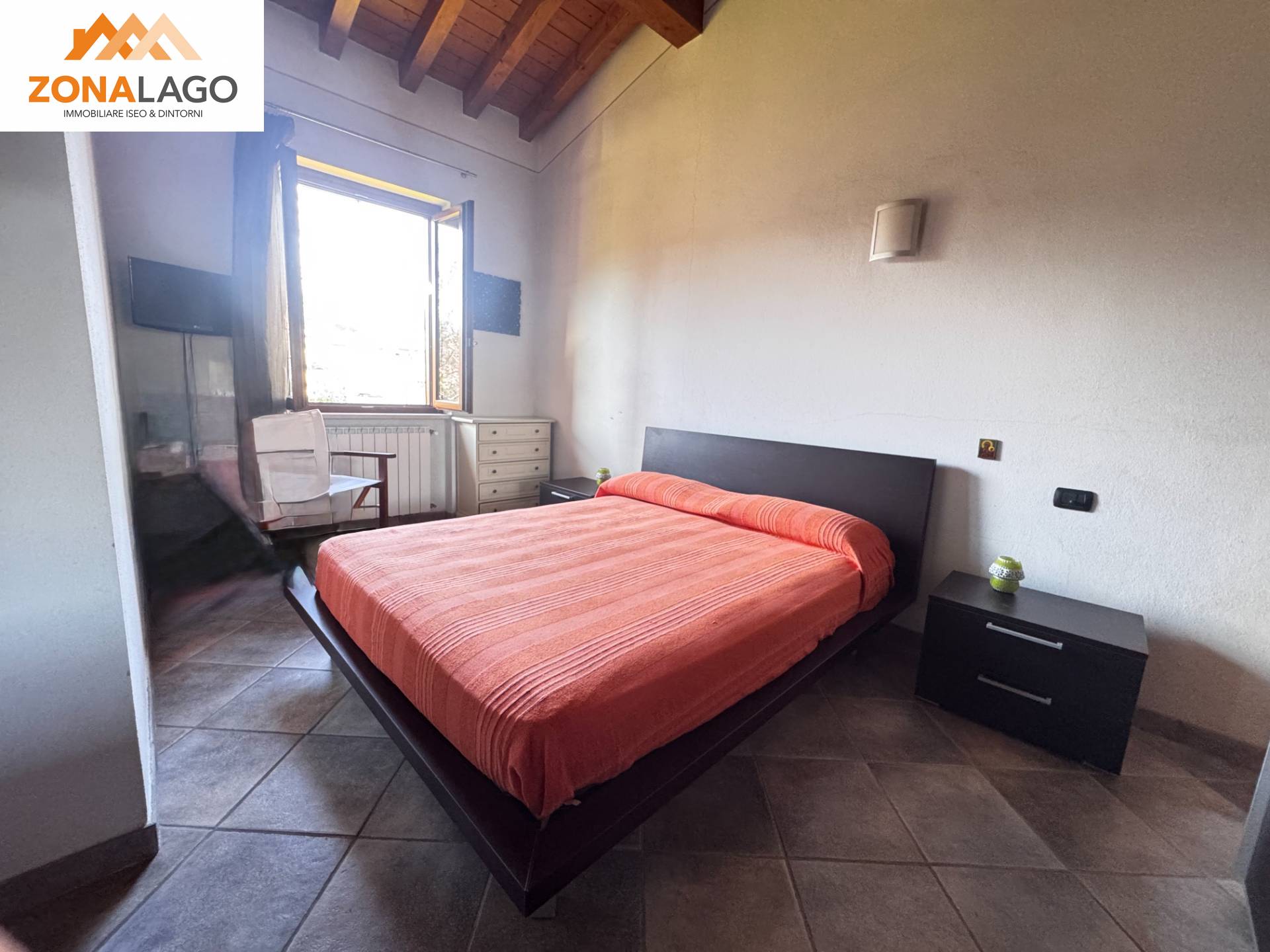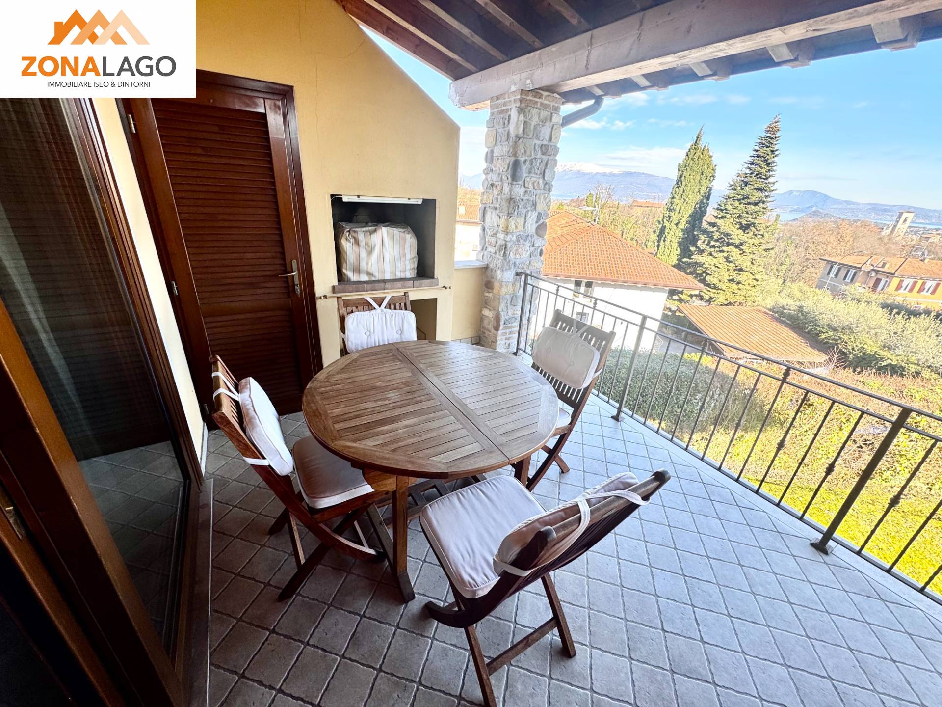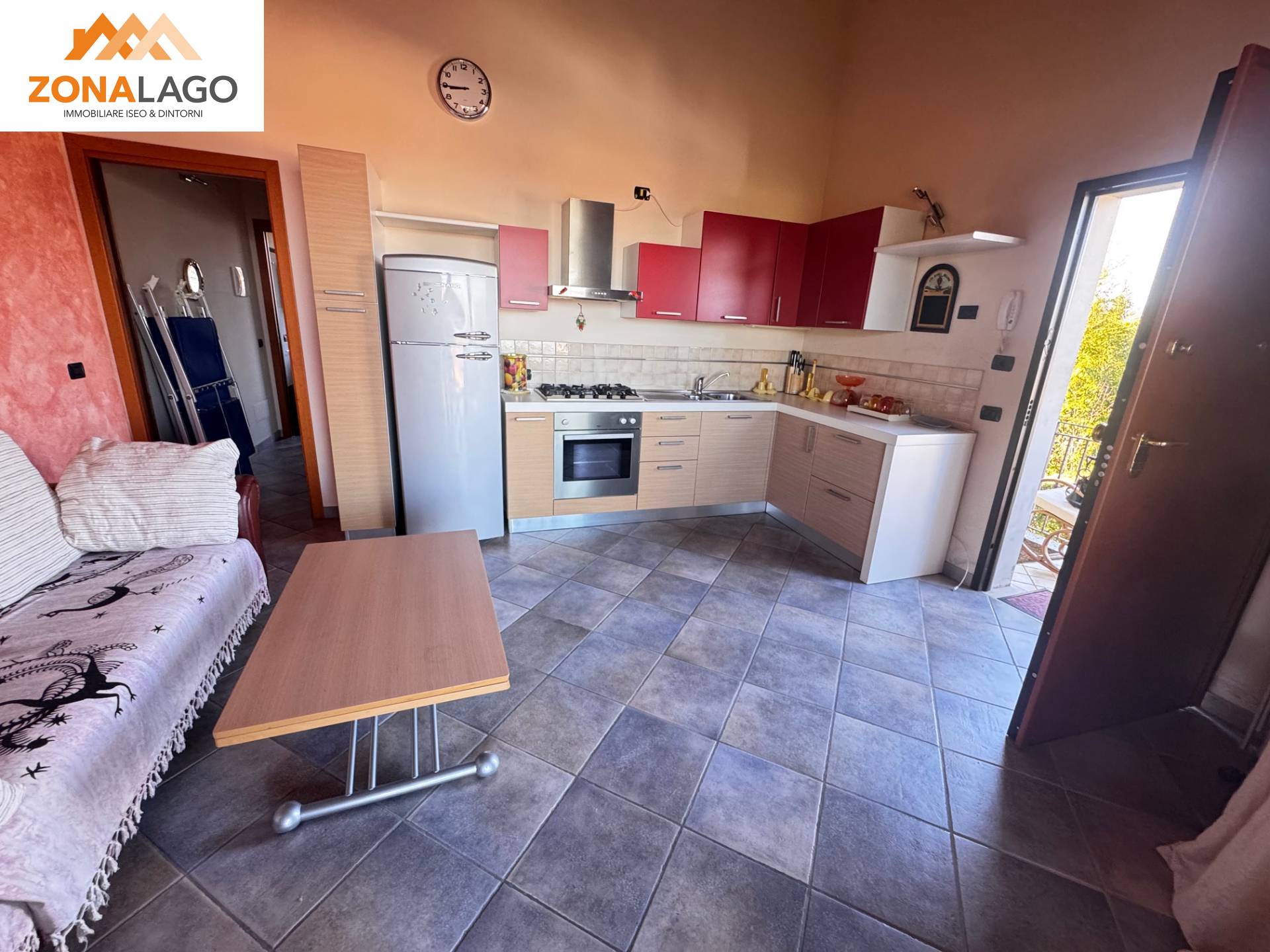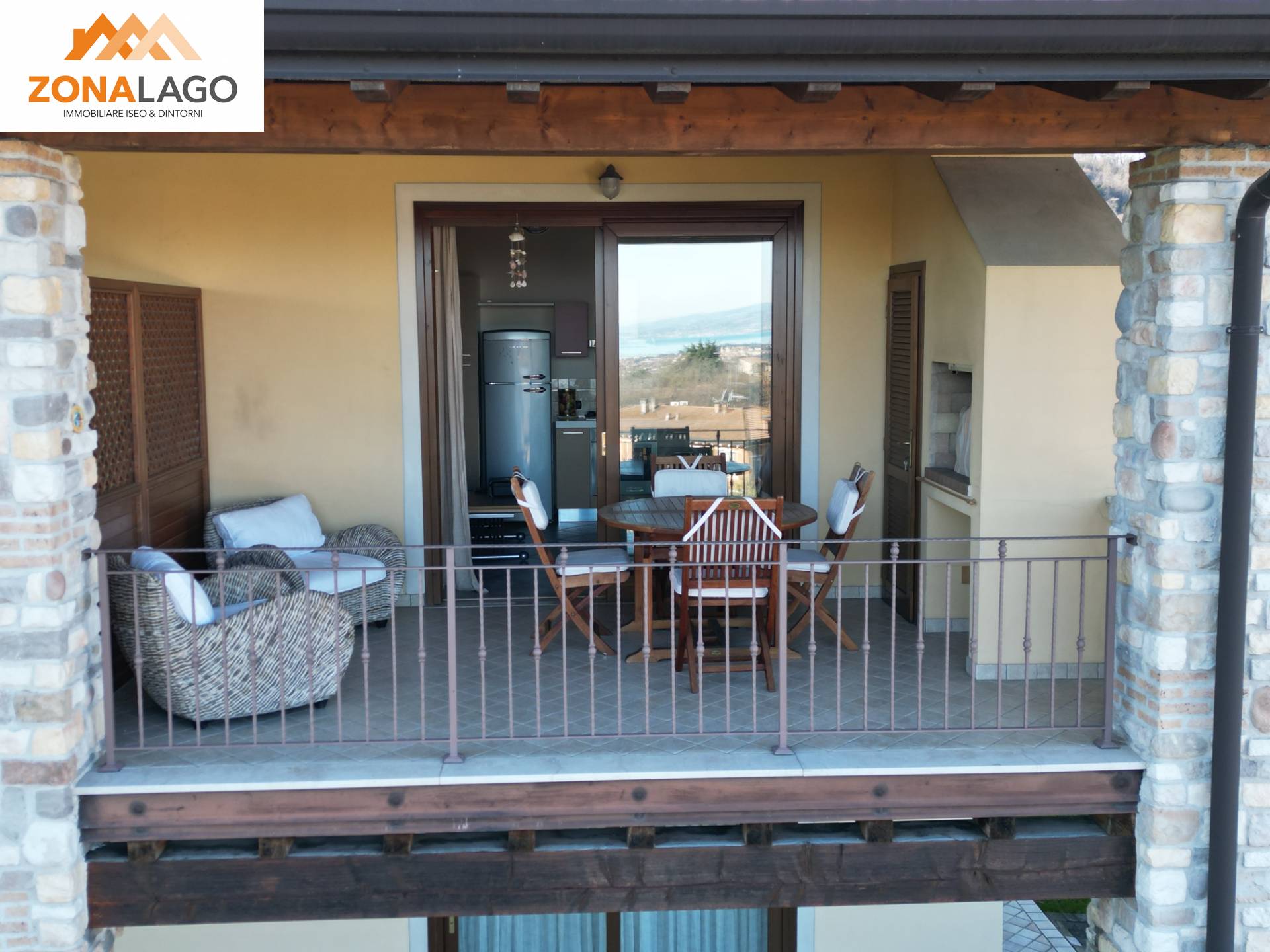 L' immobile è composto da zona giorno con cucina a vista con accesso all'ampia terrazza vista lago e già attrezzata da barbecau, una camera da letto spaziosa e un bagno moderno con doccia.